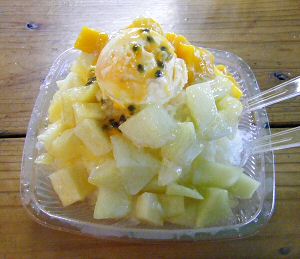 上の写真は、メロン、マンゴー、パイナップル、パッションフルーツ+アイスクリームがのって、1000円くらいだったと思います。